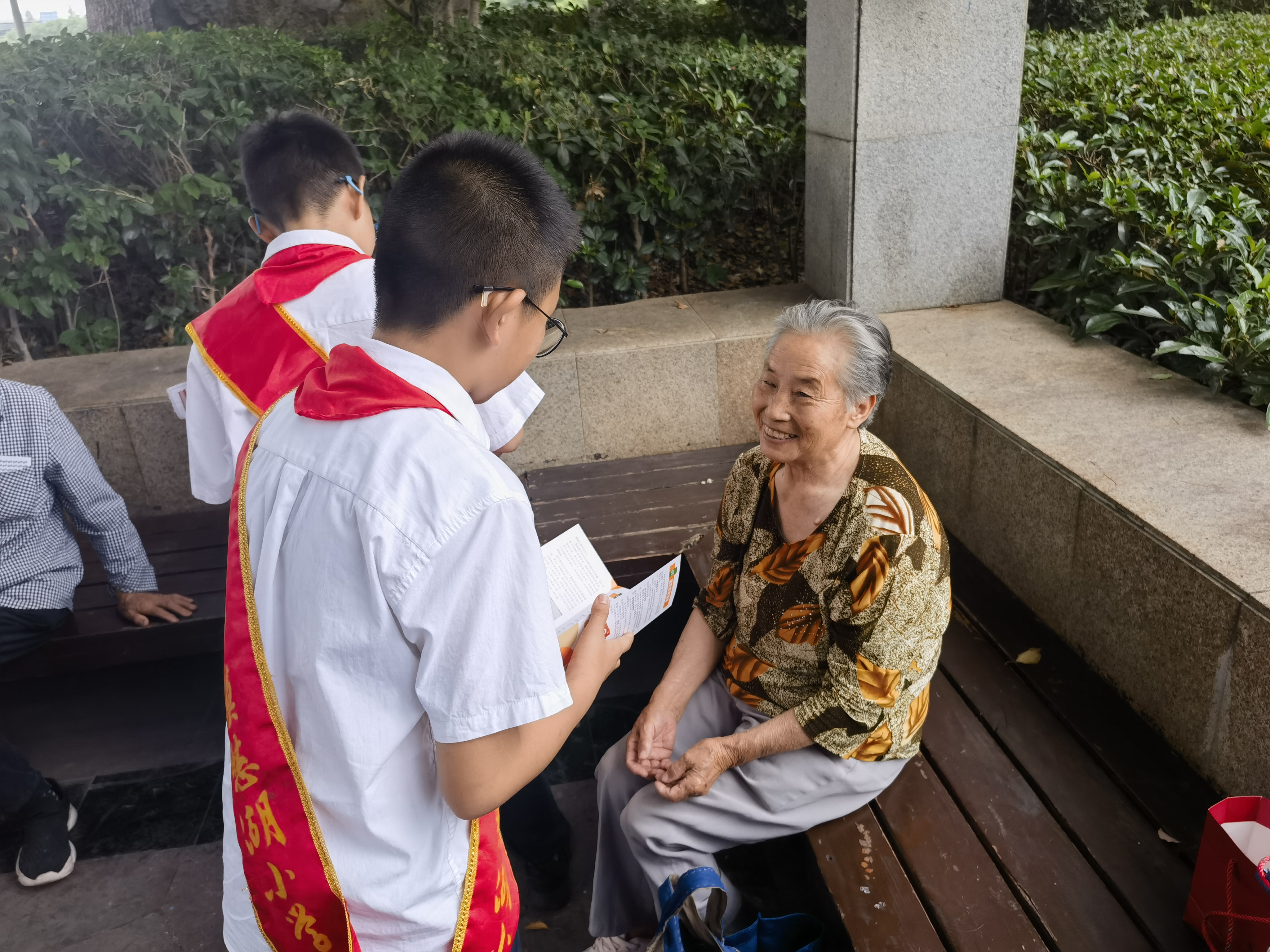 莫愁湖小学的大队委代表们和南京工业大学柔性电子学院的团员代表们精心准备了一系列国防知识宣传材料,通过发放国防宣传手册的形式,向在场的居民普及国防知识。同学们还结合建邺人防主题广场的主题宣传栏、法治灯箱、人防工程翻转牌、防空防灾卡通宣传画等,向居民介绍遇到各类灾害时的自救互救方法和技能。