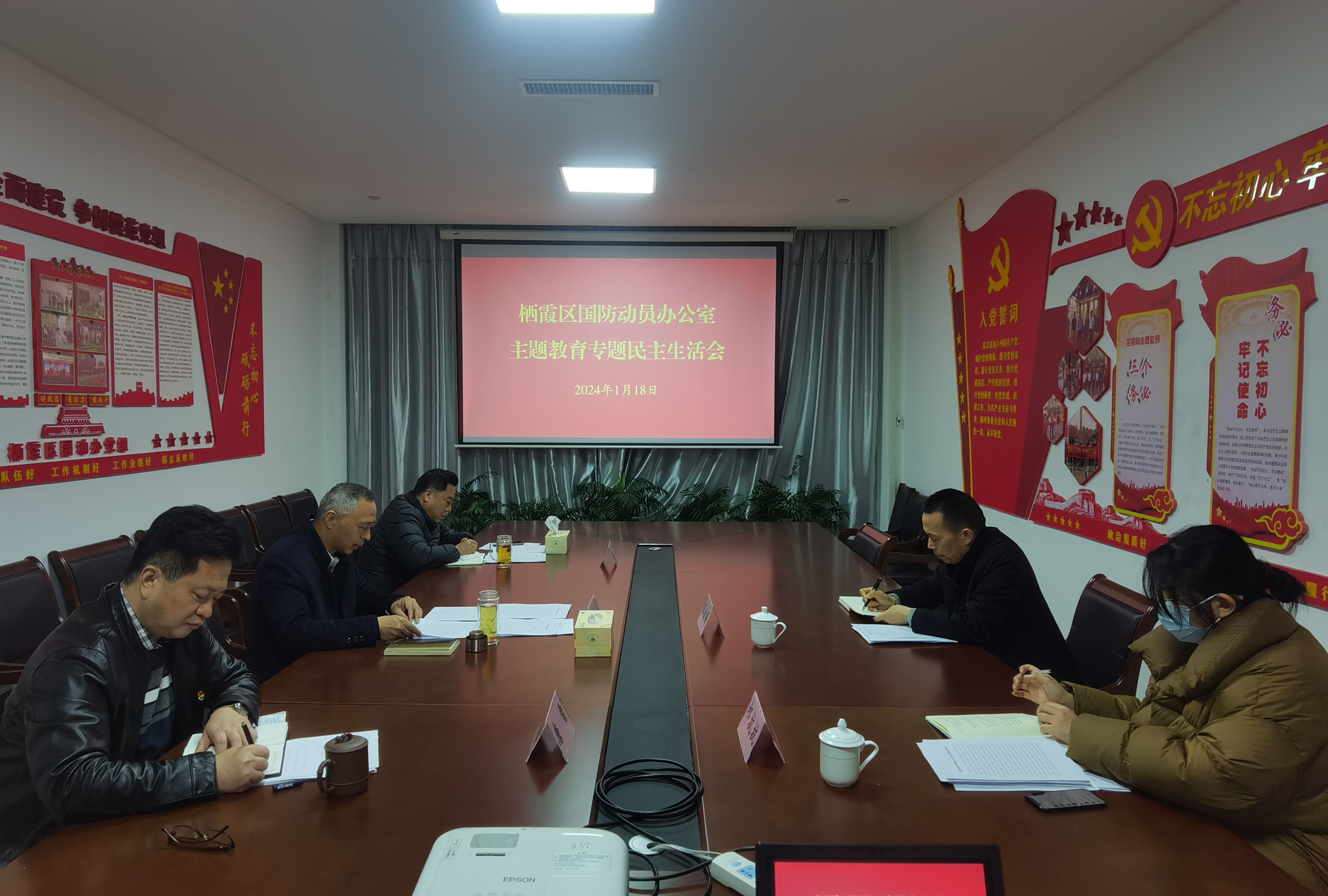 1月18日上午,栖霞区国防动员办公室党组班子召开主题教育专题民主生活会,区国动办党组成员参加,区纪委监委派驻纪检监察组蔡绍锦同志到会指导,会议由区国动办党组书记赵家宝同志主持。