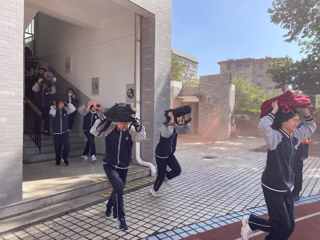 请大家有序撤离、不要恐慌、听从引导……”4月18日上午,随着警报声响起,“鼓防—2024B”校园防空袭疏散演练在南京育英外国语学校举行,全校1400名师生在安全引导员的指引下,迅速从各楼层通道口有序撤离教学楼。撤离疏散中同学们一个个表情严肃,或头顶书包或用毛巾捂住口鼻猫腰快速向安全地点疏散集结。