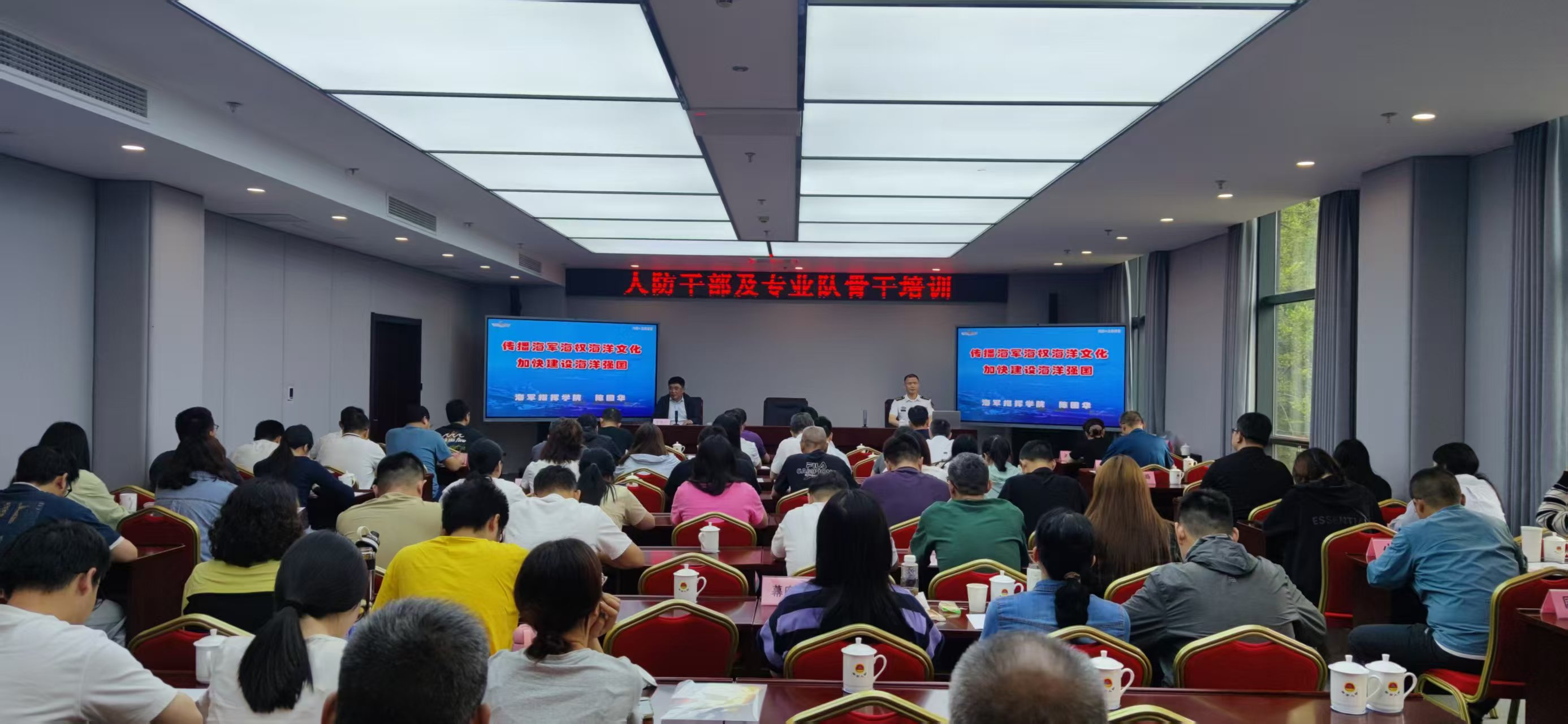 为了搞好培训,区国动办孙勇同志亲自设计并审定培训方案,本次培训内容丰富,包括国防形势教育、人民防空疏散预案编制及信息填报会审、人口疏散与人员掩蔽讲座、自救互救知识讲座及技能培训、突发公共卫生事件应急处置等。培训过程中,海军指挥学院教授陈国华海军大校以《传播海军海权海洋文化,加快建设海洋强国》为题,为大家带来了一场精彩的讲座。此外,河海大学校医刘蕾蕊还进行了心肺复苏的理论与实操教学,参训人员分组进行了操练。资深人防工作者陈学荣也为大家带来了人口疏散与人员隐蔽的理论教学。