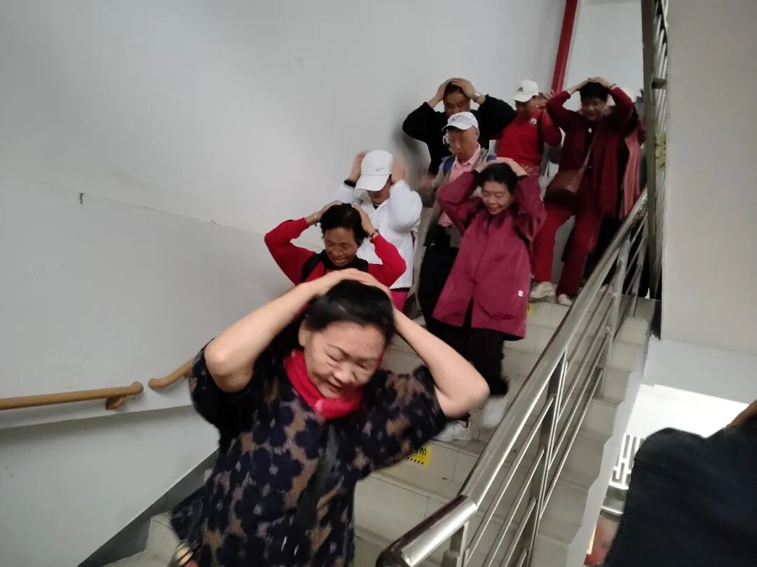 上午8点,人防志愿者向参与演练的居民说明了演练内容,随后将60名居民分为四组,分别集合在四个楼道的相应楼层。社区人防社工通过应急广播播报了防空袭警报,各疏散组按照预定线路快速有序下楼,在人防志愿者的引导下有序前往预定疏散点位。整个疏散过程快速有序,演练任务圆满完成。