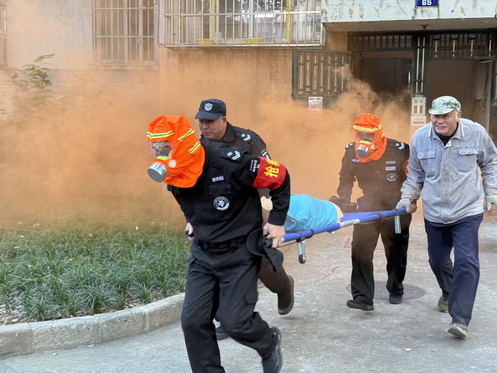 本次演练以“住宅突发火情”为模拟场景,覆盖预警响应、疏散逃生、初期火灾扑救、伤员救治等全环节。演练前,社区提前部署,明确疏散路线、集合点和各小组职责;活动中,随着警报拉响,“起火点”浓烟迅速扩散,楼内居民在“网格员+物业安保”的引导下,用湿毛巾捂住口鼻,低姿向楼下安全区域撤离,全程仅用40秒便全部集结至广场指定位置。