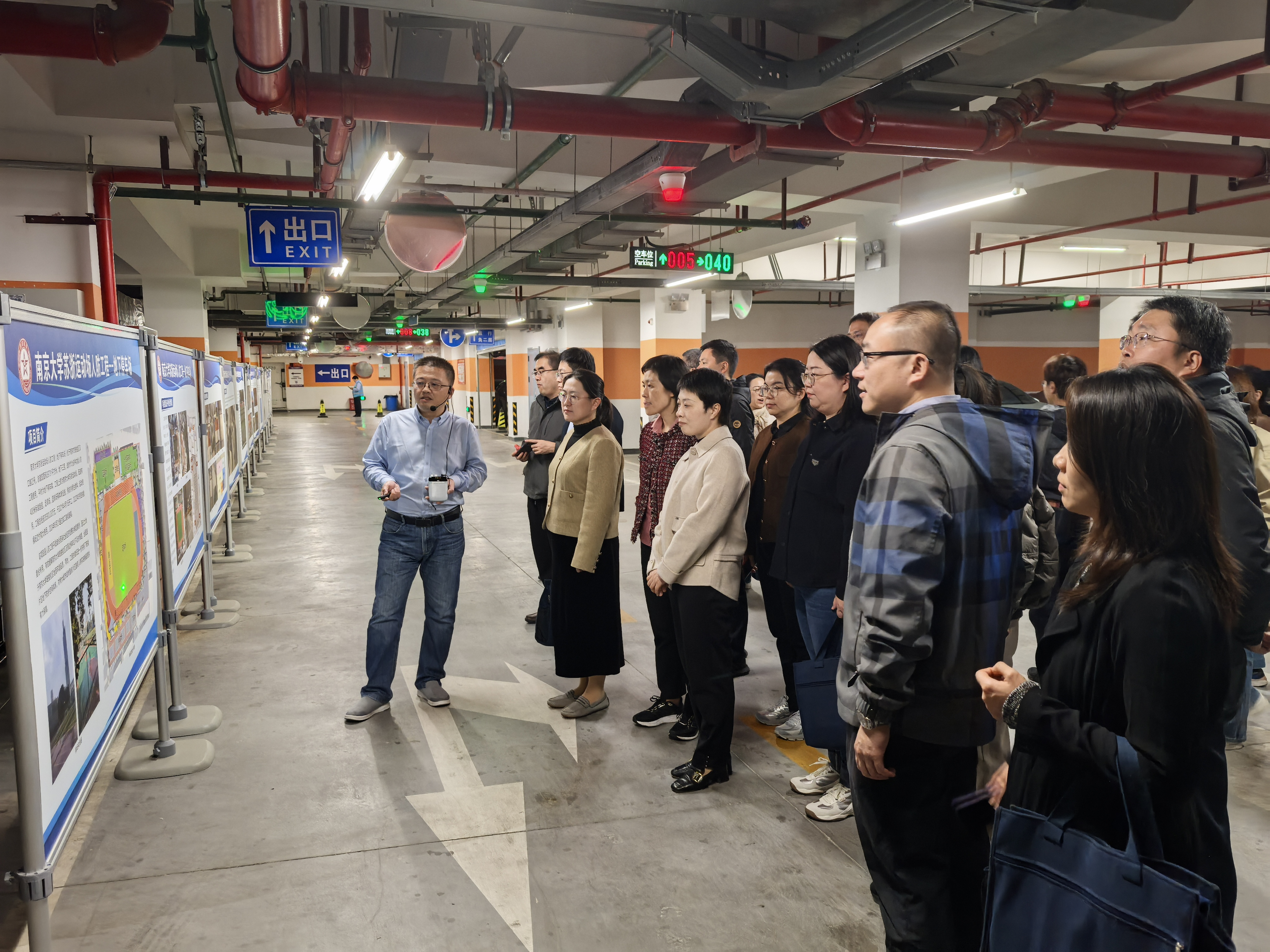 教学首站,学员们先后走进大行宫、南京大学苏浙运动场两处人防工程。不同于想象中的神秘冷峻,地下空间整洁有序、设施完善、标识清晰。市国动办工作人员详细讲解了人防工程的内部结构、防护等级、通风滤毒、水电供应等关键系统,深入阐释其“战时防空、急时应急、平时服务”的核心功能。“以前只知道城市地下有防空洞,今天亲身走进才真正理解其战略价值和设计巧思!”一位学员参观后感慨。得知这些人防工程在和平时期被创新开发为停车场、商业空间、物资储备库、宣传教育基地,实现“平战结合、军民融合”,学员们纷纷点赞这种高效利用模式——既盘活了存量资源,更潜移默化增强了全社会国防观念和人防意识。工作人员还详解了人防工程平战转换的工作流程与标准,让学员们对保障战时效能的关键环节有了清晰认知。