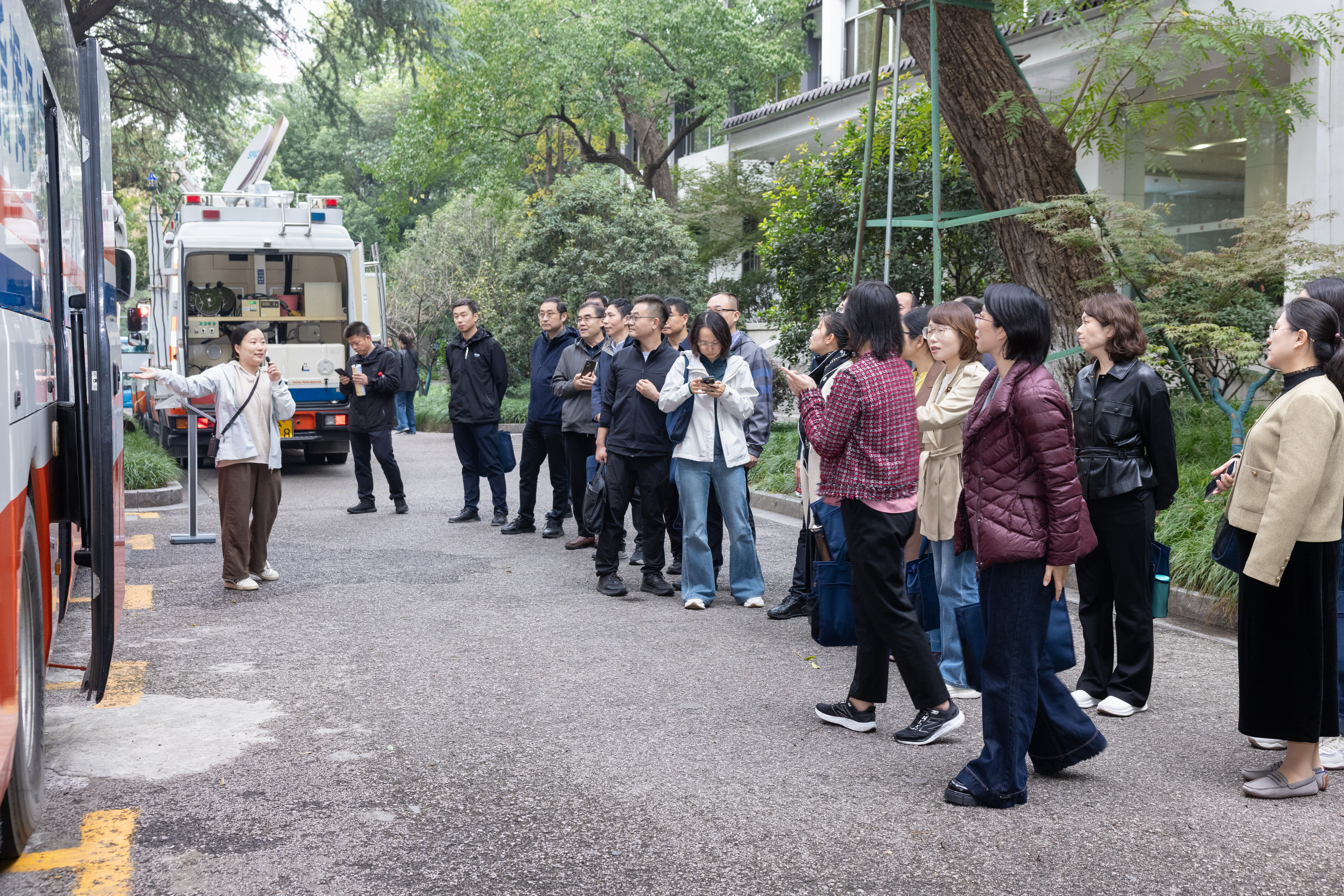 第二站,参观市人防机动指挥所,规范的指挥车辆、先进的天线设备、集成的通信系统,构成了灵活部署、高效协同的现代化指挥平台。技术人员现场演示卫星通信、无线组网、信息处理等功能,介绍了机动指挥所在实战化演练、重大活动保障及突发事件应对中的应用场景。“彻底改变了对人防指挥‘固守一地’的传统印象!”一位学员观摩后表示,机动指挥所实现了应急指挥“动中通、全域达”,大幅提升了国防动员快速反应和持续保障能力。这种高度信息化的装备,正是新时代国防动员体系与现代信息技术深度融合的生动体现,对提升区域综合防护能力意义重大。