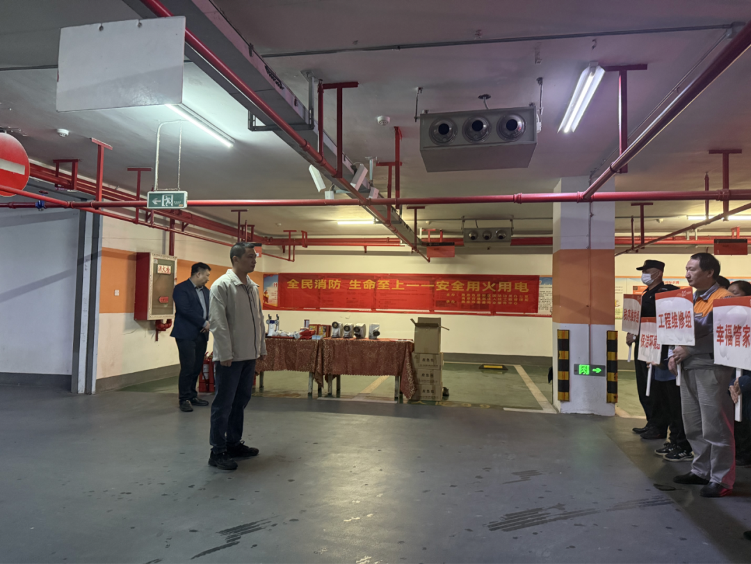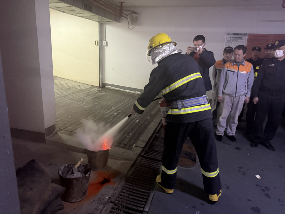 演练于13:00正式启动,模拟了地下车库车辆突发火情。接到“火情指令”后,指挥部迅速做出反应,加强统筹调度。灭火行动组携带灭火器、灭火毯等器材快速抵达现场,精准研判初期火情并开展扑救。疏散引导组按预定路线,引导参演人员用湿毛巾捂住口鼻、低姿有序撤离至地面安全区域。警戒保卫组划定警戒范围,保障疏散通道畅通。医疗救护组在安全区域设立临时救护点,模拟开展受伤人员急救处置。参演人员动作到位、处置规范,整个演练过程紧张有序,达到了预期目的。