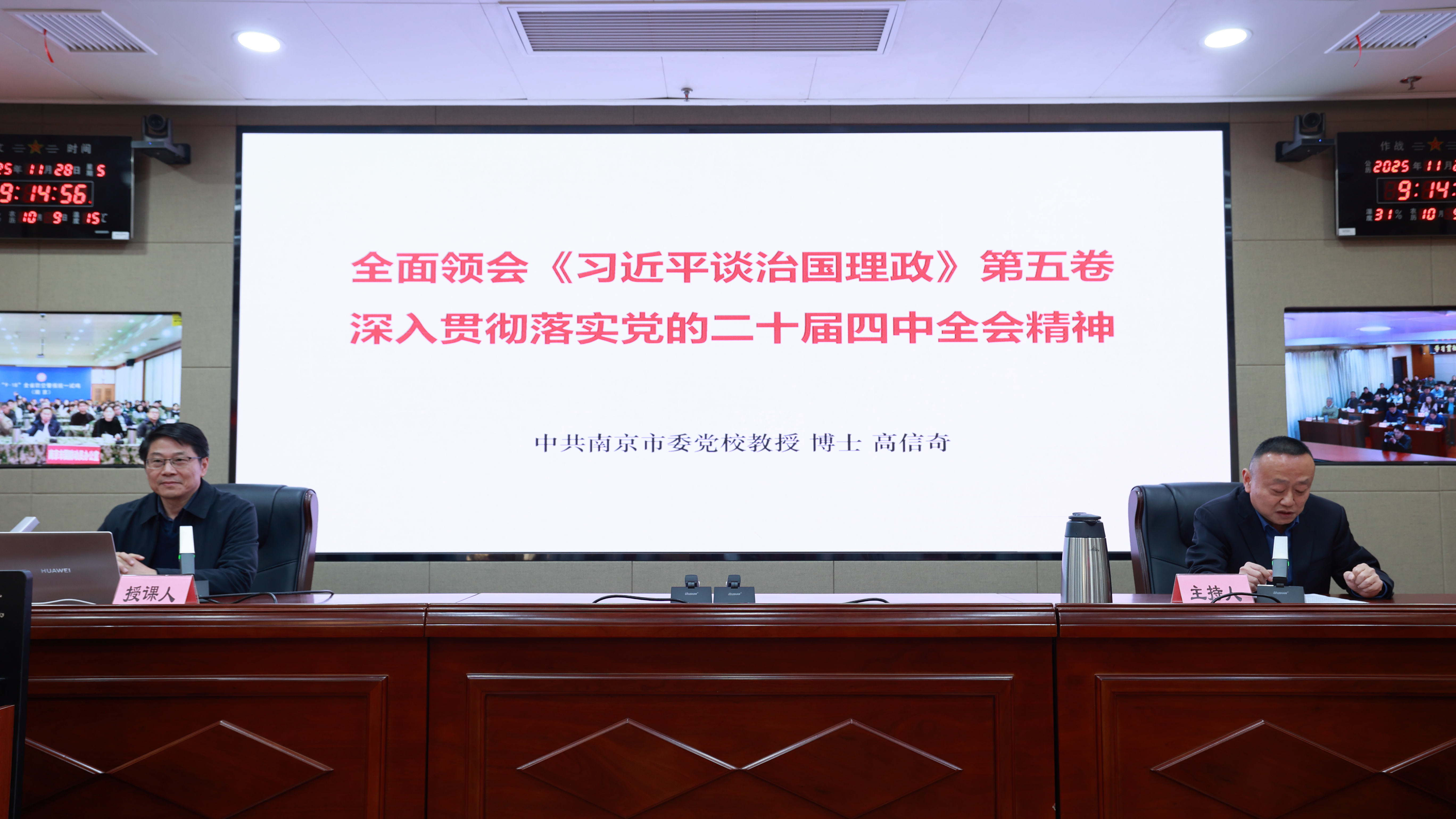 为推动党的二十届四中全会精神在国防动员领域落地生根、入脑入心,11月28日上午,市国动办举办学习贯彻党的二十届四中全会精神宣讲活动,市委宣讲团成员、市委党校高信奇教授作专题辅导报告。市国动办机关和直属单位全体干部职工参加宣讲会,并邀请结对共建单位迈皋桥街道开展联学。