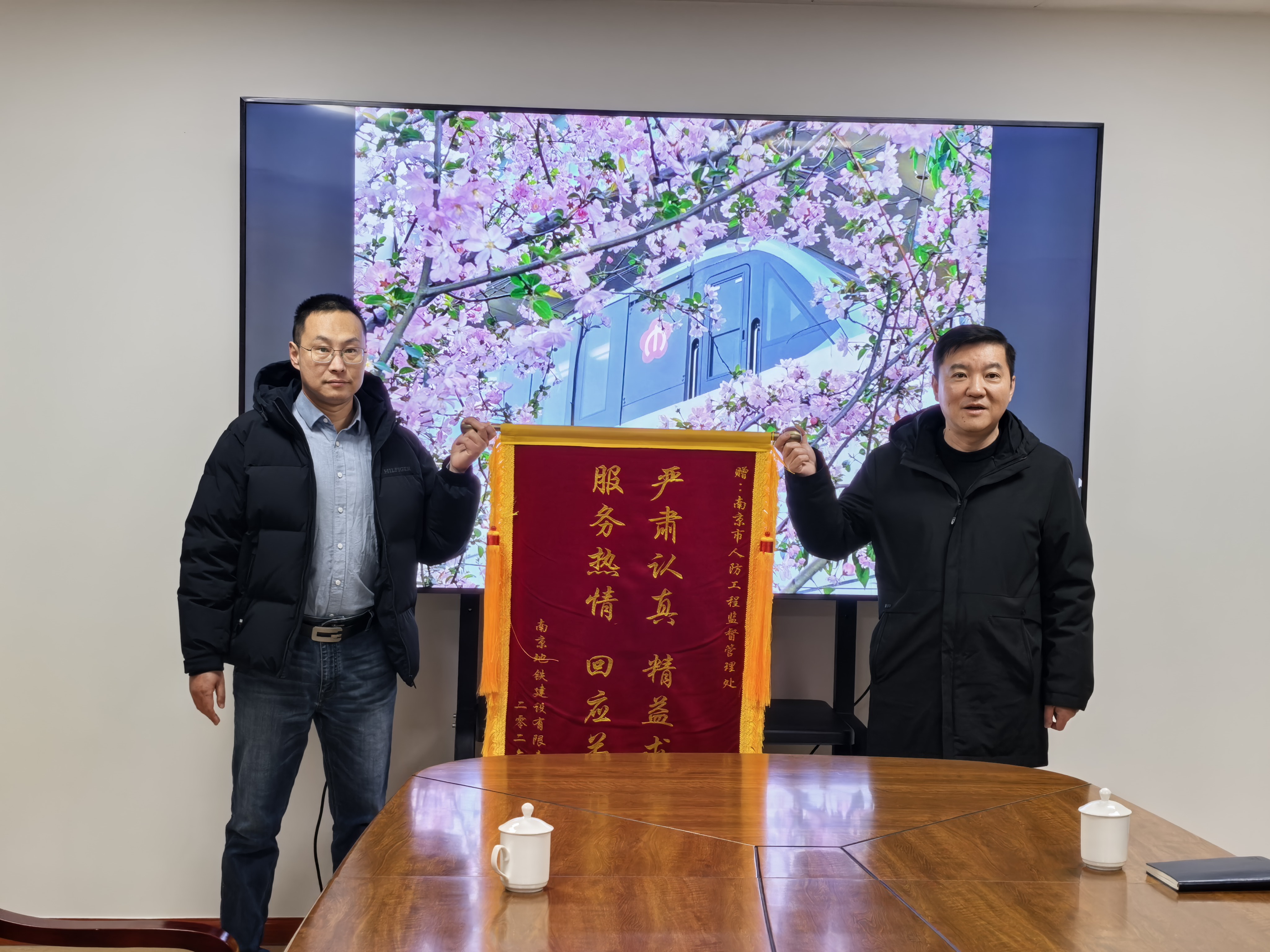 1 月 21 日,南京地铁建设有限责任公司副总经理刘建石带队将一面印着“严肃认真、精益求精、服务热情、回应关切”的锦旗,送至南京市人防工程监督管理处。